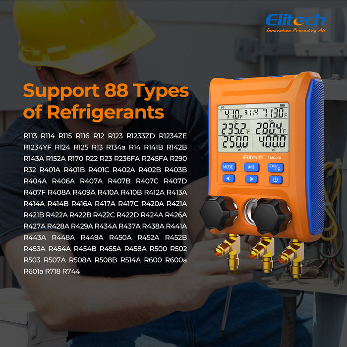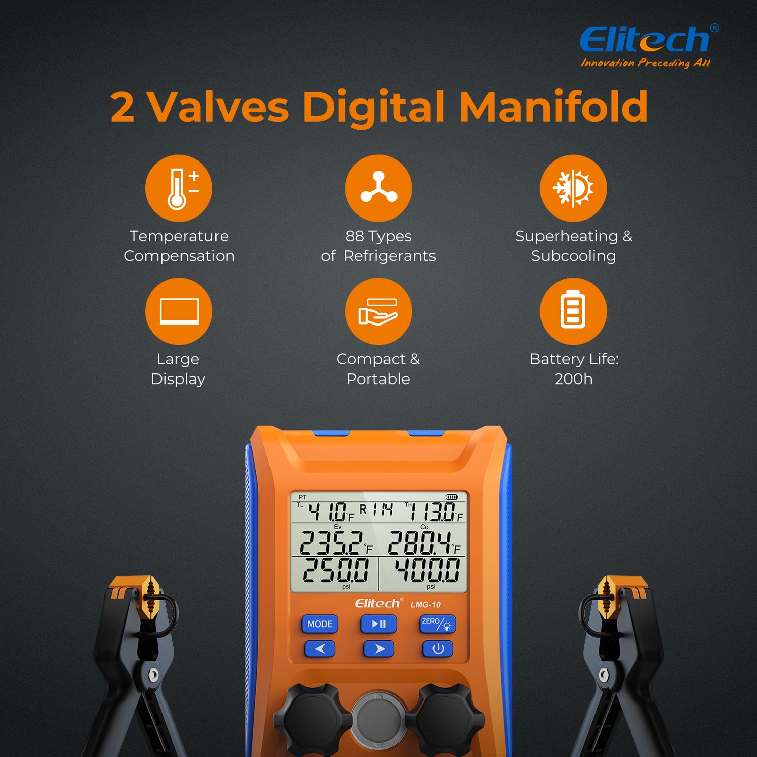 Elitech LMG-10 Digitales Kälte-Verteilermessgerät-Set, hochpräzises Druck-Temperatur-Vakuum-Leckage-Tester-Dignostik-Messgerät-Set