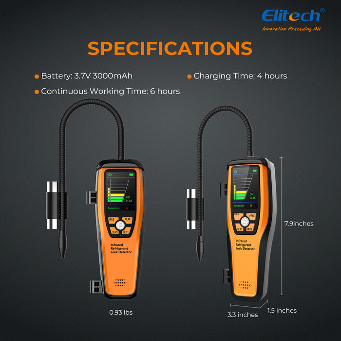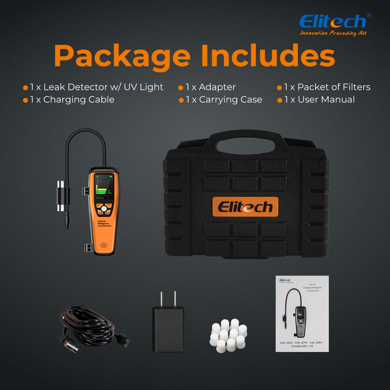 Elitech ILD-300 Elektronischer Kältemittel-Lecksucher HLK, Freon-Lecksucher, Infrarotsensor mit einer Lebensdauer von bis zu 10 Jahren, 4 g/Jahr, Gasauswahl