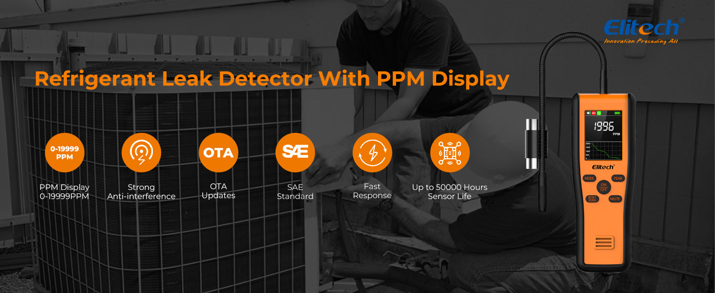 Quantitativer PPM-Messwert des Kältemittelleckdetektors METRUM von Elitech für HVAC/R- und Auto-AC-Service