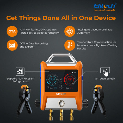 No reviewsEn stockElitech EMG‑40V es un kit de manómetro digital inteligente para sistemas HVAC/R con pantalla táctil a color de 5", colector de válvulas de 4 v...