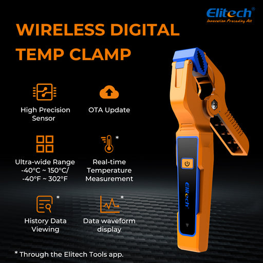 ELITECH IPT-01 Cuesta de temperatura inalámbrica para sistemas de calefacción y enfriamiento de HVAC Termómetro T de tipo T, alta precisión, registro de datos y monitoreo remoto de la sonda de temperatura de HVAC con Bluetooth y operación de la aplicación