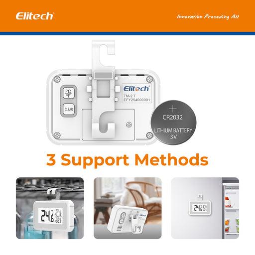 Elitech TM-2th Fridge Termómetro Higrómetro Digital Freeze Refrigerator Termómetro impermeable gran pantalla LCD
