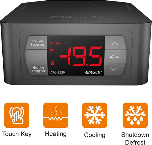 Controlador de temperatura digital precableado Elitech ATC-1550, salida de calefacción, refrigeración e iluminación, termostato con tecla táctil