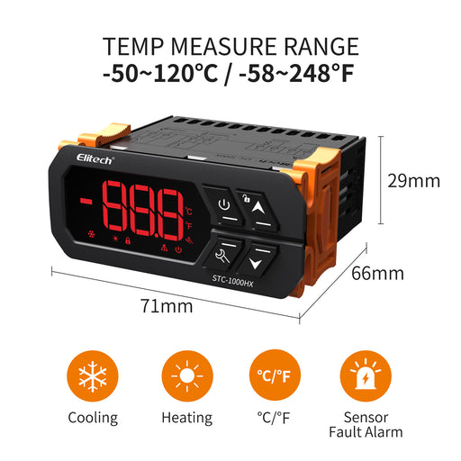 Termostato controlador de temperatura Elitech STC-1000HX, actualización STC-1000, interruptor automático de refrigeración y calefacción, ℃/℉, con sensor de sonda de temperatura NTC