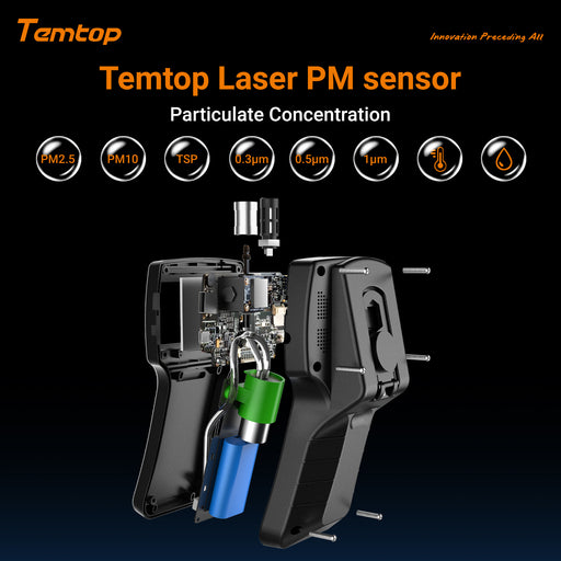 Monitor de calidad del aire TEMTOP P1-PM2.5, PM10, Temp y Humity Detector con aplicación AQI y Bluetooth en tiempo real