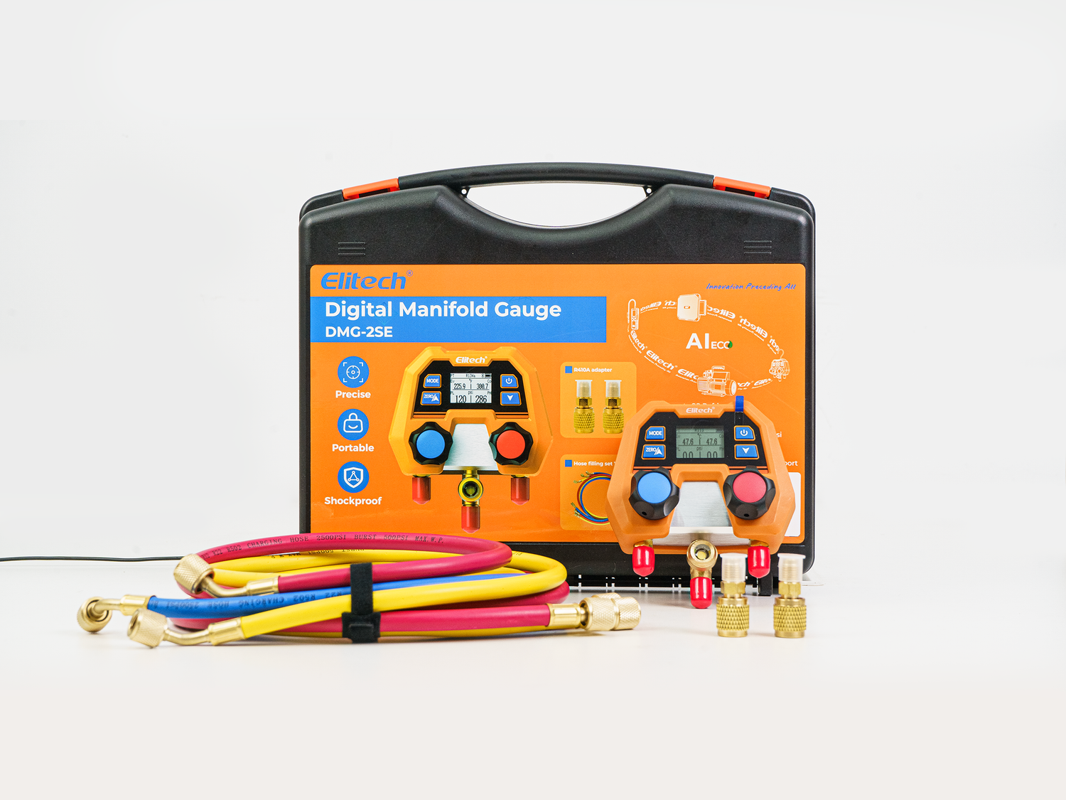Kit de manómetro digital Elitech DMG-2SE para HVAC y refrigeración & Sistemas de aire acondicionado – Presión & Medición de temperatura, pantalla LCD con mangueras