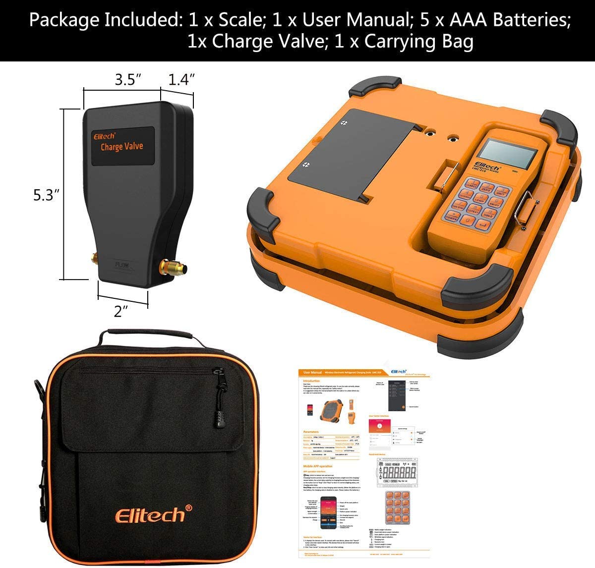 Elitech LMC-310 Balanza de refrigerante inalámbrica HVAC Balanza de peso con protección contra sobrepeso 220Lbs/100Kg