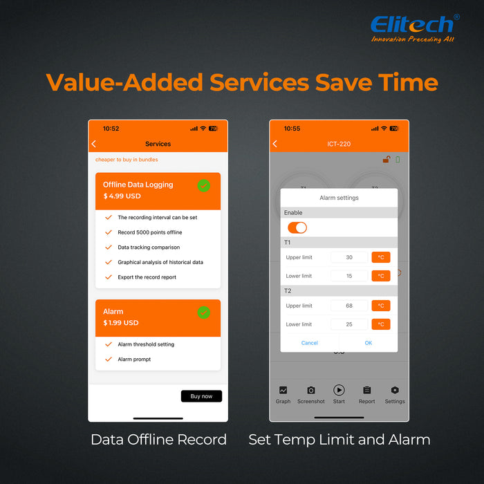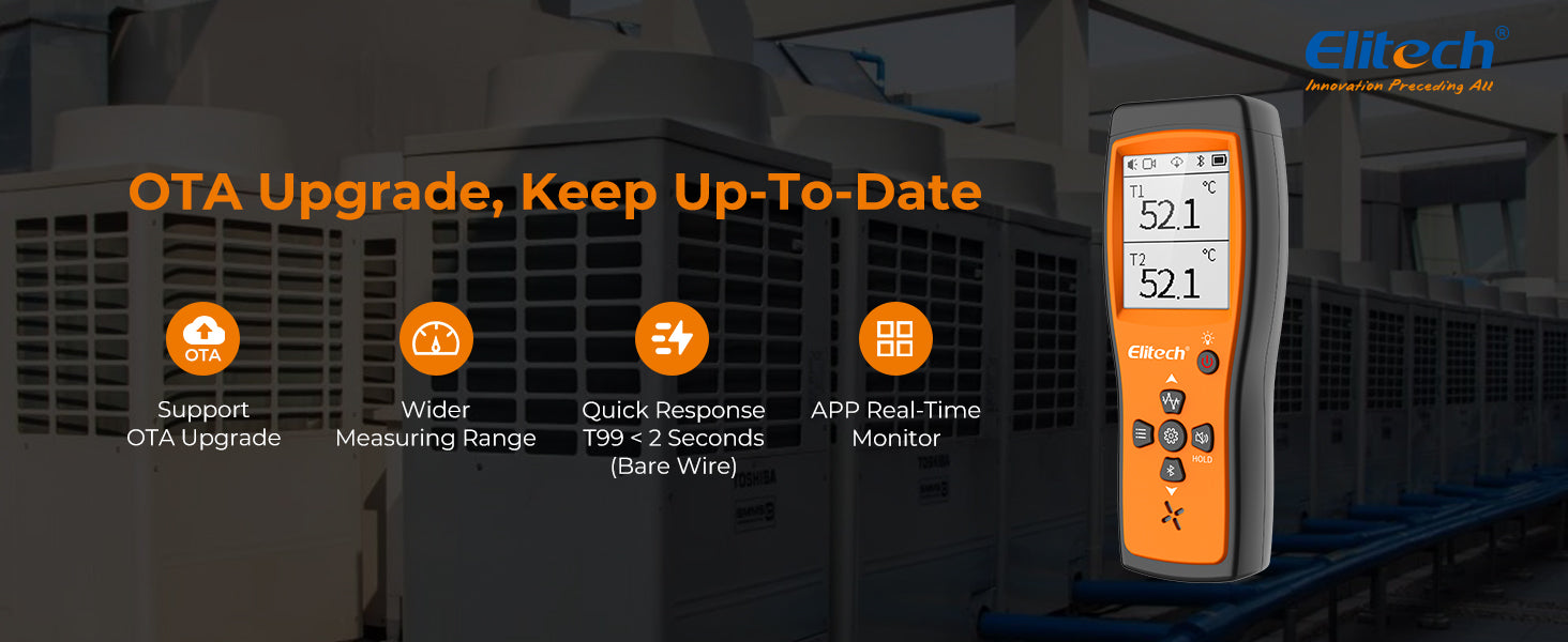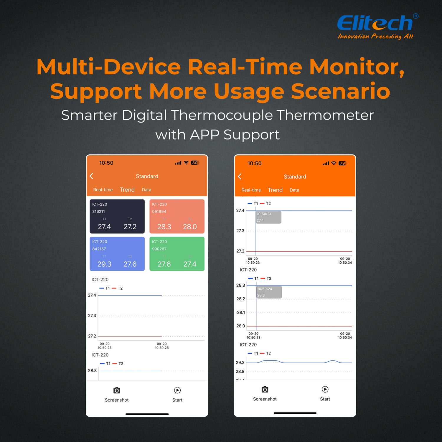 Termometro a doppia termocoppia Elitech ICT-220 - Sensore di temperatura di tipo K ad alta precisione con app, risposta rapida, adatto per i settori della refrigerazione, della manutenzione automobilistica e delle pompe di calore